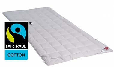 Tencel-Auflage mit 350 g/m² Füllgewicht mit Baumwollbezug oder Tencel-Auflage mit 500 g/m² Füllung im Fair-Trade-Baumwollbezug